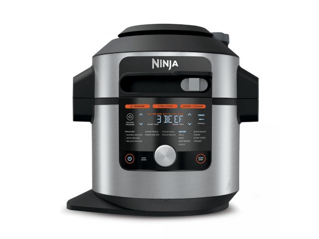 Ninja multi-kuhalo je višenamjenski kuhinjski aparat s jedinstvenim SmartLid poklopcem koji otključava više funkcija kuhanja i omogućuje jednostavno prebacivanje između tri napredna načina: brzog kuhanja pod pritiskom, zdravog Air Fry prženja i inovativnog Combi-Steam kombiniranja pare i konvekcijskog zraka. Zahvaljujući Combi-Steam načinu, kompletan obiteljski obrok pripremi se za manje od 30 minuta, iznutra mekan i sočan, a izvana hrskavo zlatno pečen.
