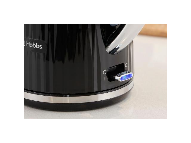 Kuhalo za vodu Russell Hobbs Eden Black je savršen spoj dizajna i performansi. Diskretan prozorčić za vodu s mjeračem omogućuje vam uštedu energije tako što ćete zakuhati samo onoliko vode koliko vam je uistinu potrebno, a uz ostale značajke, poput poklopca koji se otvara pritiskom na tipku, kljuna za savršeno točenje vode i baze koja se okreće za 360 °, iskustvo rada s ovim kuhalom je savršeno elegantno. A budući da je vaše kuhalo za vodu stalno izloženo na radnoj plohi, zašto ne biste imali kuhalo koje će biti užitak gledati? S kućištem u modernoj crnoj boji i elegantno izrezbarenom površinom, ovo kuhalo će biti centralni objekt u vašoj kuhinji.