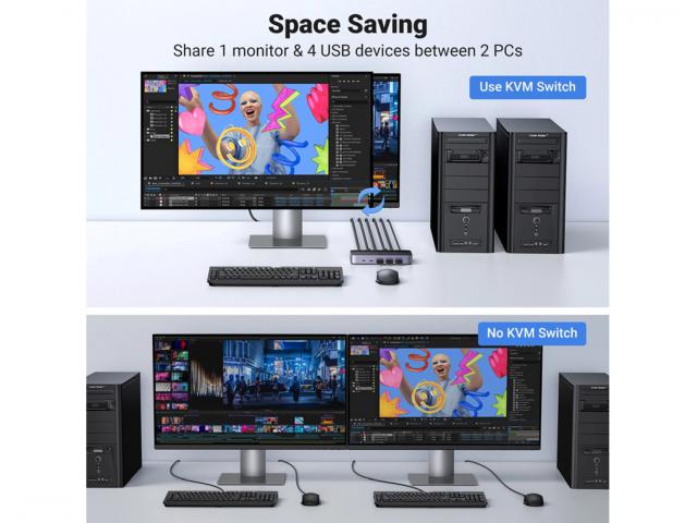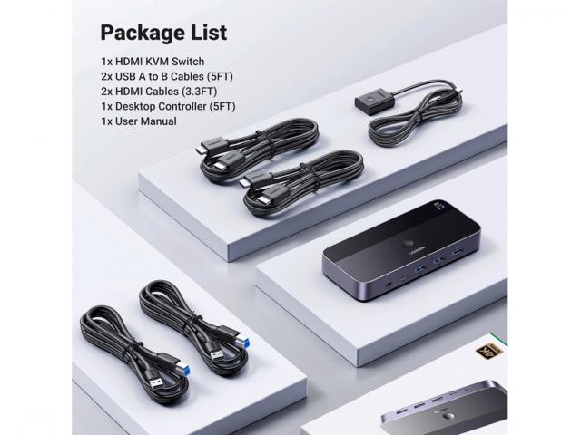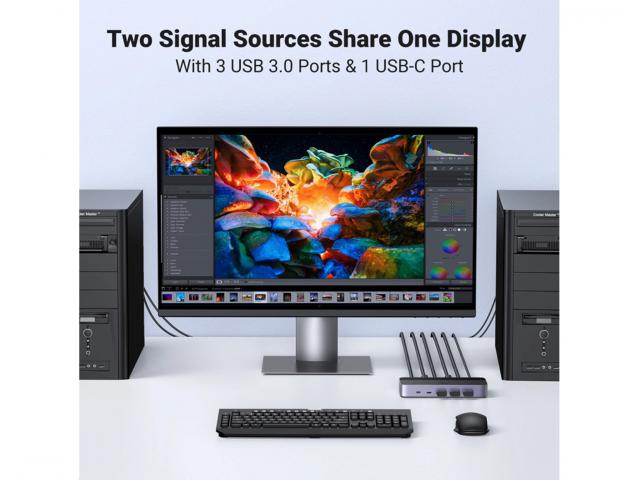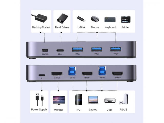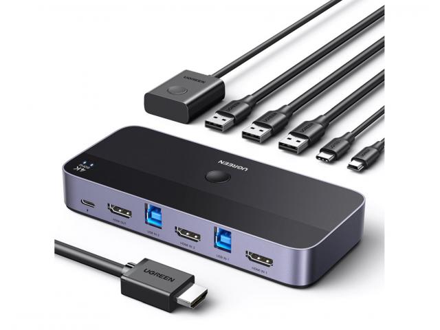 Ugreen CM664 KVM preklopnik omogućuje vam jednostavno dijeljenje perifernih uređaja poput monitora, miševa, tipkovnica, pisača, skenera, vanjskih tvrdih diskova između dva računala. Nudi sveobuhvatnu konfiguraciju priključaka, što ga čini kompatibilnim sa širokim rasponom uređaja.