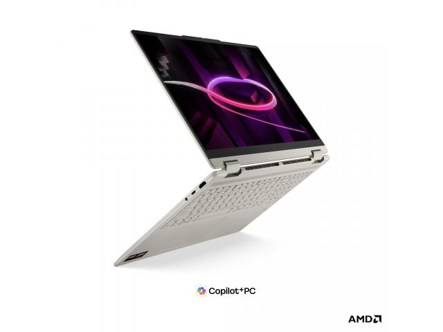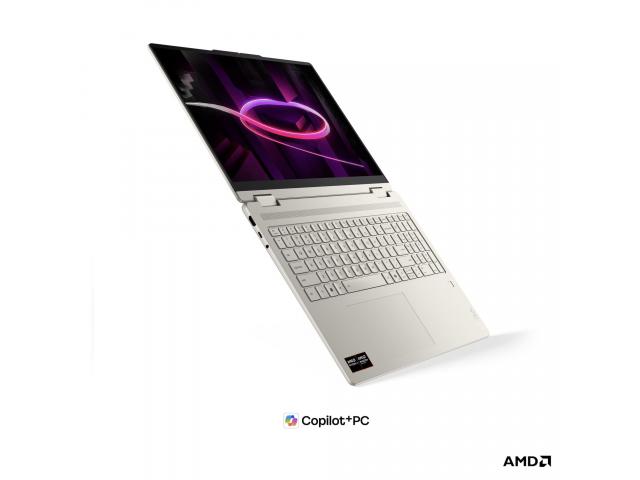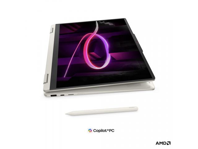 Za grafiku je zadužena integrirana AMD Radeon 840M, optimizirana za svakodnevni rad, multimediju, streaming i lagane kreativne aplikacije uz nisku potrošnju energije. Posebnu vrijednost donosi 16-inčni 2.8K OLED touchscreen (2880 × 1800) koji pruža iznimno oštru sliku, duboke crne tonove i 100% DCI-P3 spektar boja. Uz HDR True Black 1000, Dolby Vision i visoku svjetlinu, prikaz je idealan za dizajn, gledanje sadržaja i rad u pokretu. Zahvaljujući 2-u-1 konstrukciji, Yoga 7 se može koristiti kao klasičan laptop, tablet ili “tent” način rada, što ga čini posebno praktičnim za studente, poslovne korisnike i kreativce koji često rade u različitim okruženjima. Kućište je tanko i lagano za ovu klasu uređaja, uz naglasak na mobilnost i premium izradu. Laptop dolazi s modernom povezivošću (USB-C, HDMI, Wi-Fi 7).
