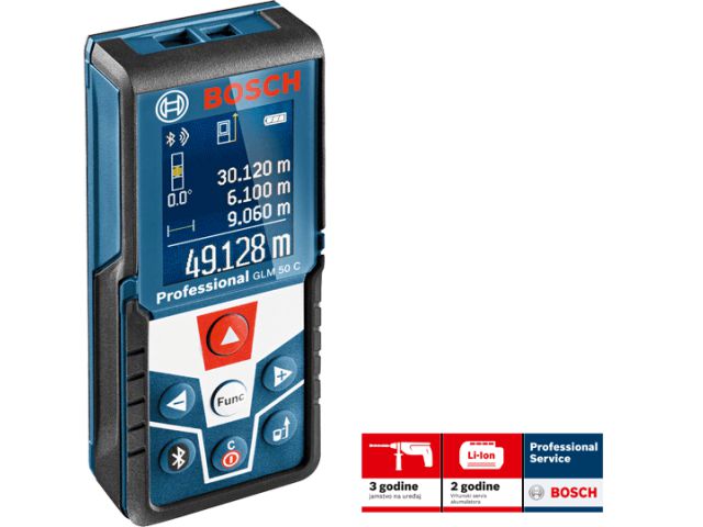 Automatsko isključivanje: 20 s (laser), 5 min (mjerni uređaj bez mjerenja), osvijetljenje: LED, oprema: mjerač nagiba od 0 do 360°, napon: 2 x 1.5 V LR03 (AAA), životni vijek baterije: ca. 10.000 pojedinačnih mjerenja, ca. 2,5 sati neprekidnog rada, radna temperatura: -10 °C do +50 °C, boja: plava / crna, automatsko spremanje zadnjih 50 mjerenja, funkcije: Bluetooth, mod oduzimanja i dodavanja, kontinuirano mjerenje, udaljenost, površina, volumen, niveliranje, automatsko isključivanje nakon 5 minuta, kalibriranje: automatsko, temperatura skladištenja: -20 °C do +70 °C , materijal: ABS plastika, mjerno područje: 0,05 - 50 m, točnost mjerenja: ± 1,5 mm, klasa lasera: 2, dioda lasera: 635 nm, promjer laserske zrake: ca. 9 mm u 10 m, ca. 45 mm u 50 m, visina: 21 mm, dužina: 106 mm, širina: 45 mm, težina: 100 g.
