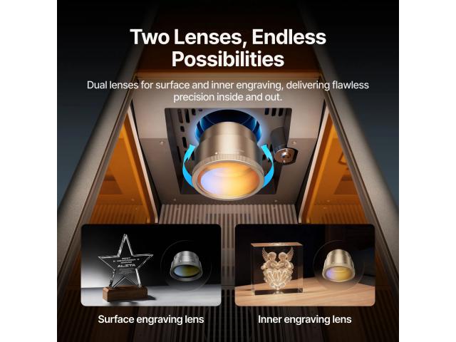 Opremljen s dvije promjenjive leće , F2 Ultra UV podržava unutarnje i površinsko graviranje s velikim radnim prostorom, postižući idealnu ravnotežu snage, veličine i kvalitete graviranja. S priključenim transporterom dobivate još veću fleksibilnost i kreativnu slobodu.