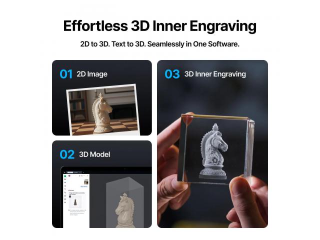 xTool Studio olakšava 3D unutarnje graviranje svima uz naprednu umjetnu inteligenciju koja pretvara tekst i slike u 3D - bez prethodnih vještina modeliranja. Automatsko fokusiranje, precizno pozicioniranje, intuitivne kontrole "povuci i ispusti" i pametni prijedlozi parametara rade zajedno kako bi pružili precizne i pouzdane rezultate.