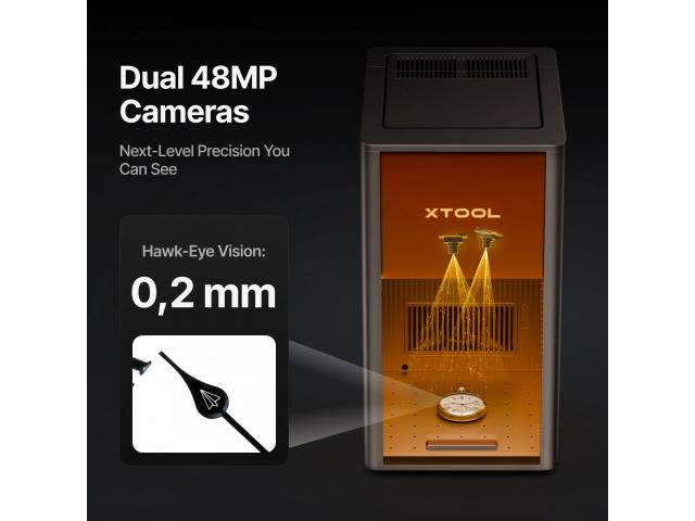 Prvi UV laserski sustav s dvije kamere u industriji. Dvije kamere automatski pozicioniraju i fokusiraju, postižući točnost od 0,2 mm osigurava 60% preciznije od sustava s jednom kamerom. Svaki proces je dosljedno bez napora, osiguravajući da je svaki detalj točno onakav kakav ste zamislili.