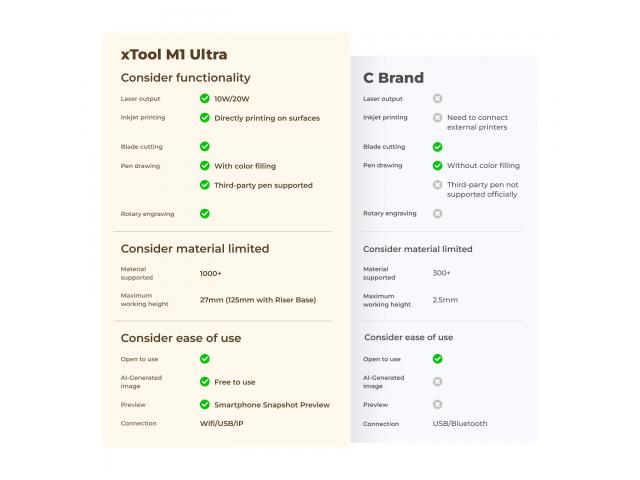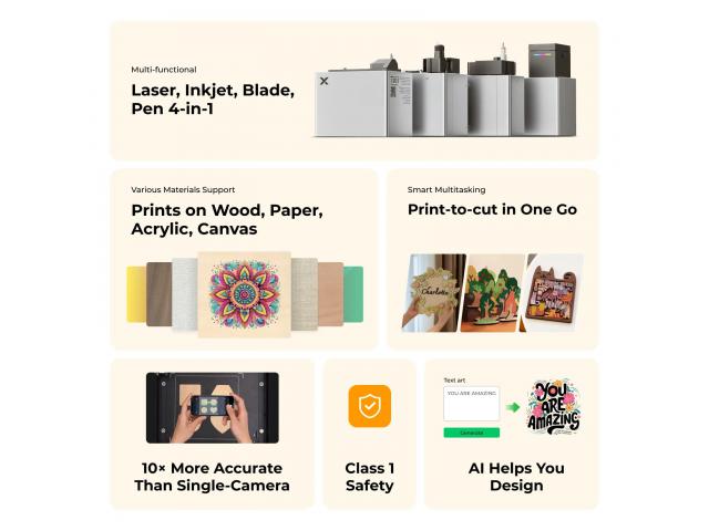 - M1 Ultra 20W: Prvi svjetski 4-u-1 višenamjenski DIY & Craft stroj koji kombinira laser, inkjet, oštrice i olovke, s brojnim mogućnostima proširenja funkcija × 1
