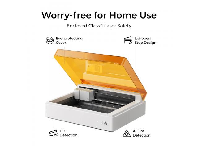 Zatvorena laserska sigurnost klase 1. Stop s otvorenim poklopcem za izbjegavanje opasnosti, ako se stroj pomakne, udari ili otvori poklopac stroja tijekom rada, stroj će se automatski zaustaviti. Za zaštitu zdravlja izvrstan sustav za odimljavanje (5400 o/min) i predfiltri brzo odvode štetne plinove nastale laserskom obradom. Veliki poklopac visoke prozirnosti nudi izvrsno filtriranje svjetla (0,35% lijevog svjetla), što omogućuje jasno promatranje procesa bez zaštitnih naočala.