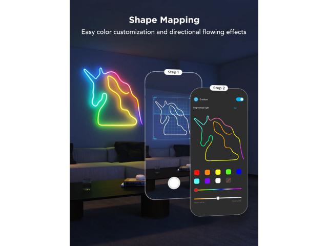 Posebne značajke: Matter, RGBIC, 12 glazbenih načina, 64 scenska načina, nadograđene kopče za savijanje, mekši materijal, mapiranje oblika