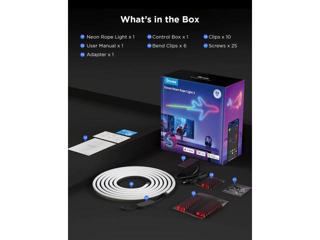 - Govee Neon Rope Light 2 je savršeno rješenje za one koji žele poboljšati estetiku svog doma inovativnom i prilagodljivom rasvjetom koja se besprijekorno integrira s postojećim uređenjem interijera.