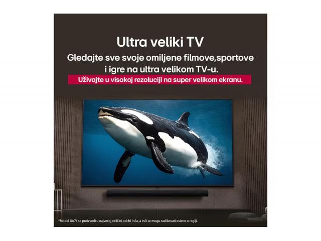 Gledajte sve svoje omiljene filmove, sportove i igrajte igre na ogromnom televizoru tvrtke LG. Uživajte u visokoj rezoluciji zaslona velikog razmjera. Snažni procesor tvrtke LG pojačava rezoluciju do izvorne kvalitete. Uživajte u 4K Super Upscaling koji poboljšava rezoluciju, osvjetljenje i jasnoću. Značajna poboljšanja radne učinkovitosti, brža obrada procesora alpha 7 AI Processor Gen8 sada omogućuje kvalitetu slike u 4K s puno boljom oštrinom i dubinom slike nego prije. Živopisne boje i osvjetljenje podižu rezoluciju zaslona na nove razine. Doživite poboljšanu kvalitetu slike s jačim kontrastom. Uživajte u filmu kako je to zamislio redatelj pomoću načina rada FILMMAKER MODE koji se prilagođavaju okruženju kako bi se očuvala slika i bila što bliže izvornom obliku.