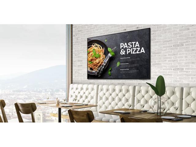 Tražite pouzdan TV za svoj kafić ili restoran? Samsung Business TV nudi 4K kvalitetu slike, 3 godine jamstva za poslovnu upotrebu i mogućnost rada 16/7. Pretvorite TV u digitalni menu board. Obični kućni televizori gube jamstvo ako se koriste u komercijalne svrhe (kafići). Ovaj Samsung dolazi s punim 3-godišnjim jamstvom za rad u poslovnim uvjetima. Ne treba ti dizajner. Preko mobilne aplikacije sam promijeni cijenu kave ili dodaj dnevni meni na ekran dok traje utakmica.