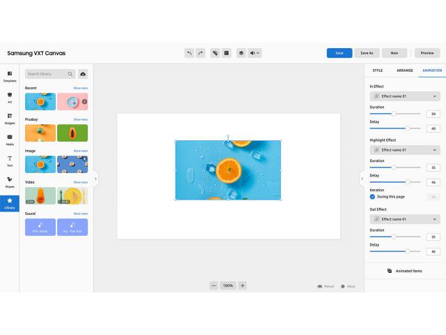 Dostupna na mobilnim uređajima sa sustavom Android ili iOS, aplikacija Samsung Business TV korisnicima omogućuje daljinsko upravljanje, zakazivanje i prikazivanje prilagođenog sadržaja. Osim toga, korisnici mogu jednostavno stvarati privlačne vizualne elemente koristeći razne gotove predloške sadržaja.