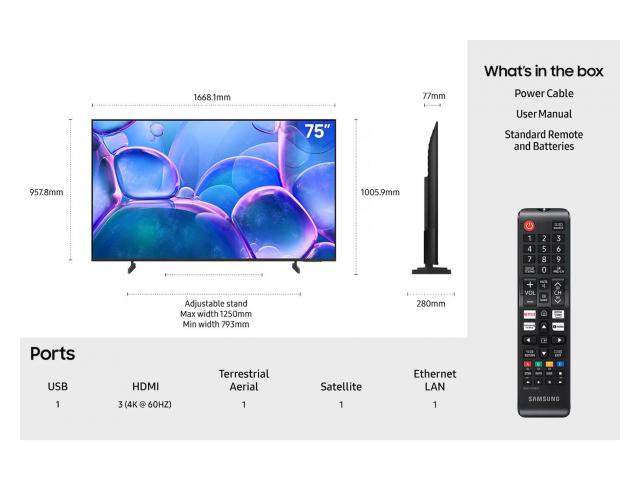 Veličina proizvoda bez postolja (ŠxVxD): 1668.1 x 957.8 x 77 mm