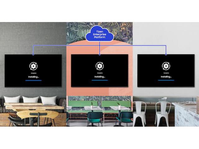Dostupna na mobilnim uređajima sa sustavom Android ili iOS, aplikacija Samsung Business TV omogućuje korisnicima daljinsko upravljanje, zakazivanje i prikazivanje prilagođenog sadržaja bez napora. Vrlo je jednostavno stvoriti privlačan sadržaj pomoću raznih gotovih predložaka.Tizen Enterprise Platform* omogućuje učinkovito upravljanje više uređaja, pružajući sve alate za jednostavno postavljanje, s integriranom servisnom infrastrukturom i pojednostavljenim održavanjem.
