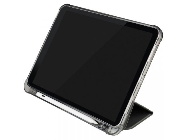 Izuzetno zaštitna torbica za iPad 10. generacije (2022.), djelomično izrađena od reciklirane plastike, s prednjim poklopcem od satenskog materijala, koja se može pretvoriti u samostojeću. Stražnja školjka otporna na udarce izrađena je od dvostruko ubrizganog prozirnog polikarbonata, upotpunjena perimetralnim rubom od TPU-a za lakše umetanje iPada. Satin omot je opremljen unutarnjim pretincem za Apple Pencil i vanjskim kućištem za njegovo punjenje. Odobren vojni standardni test.