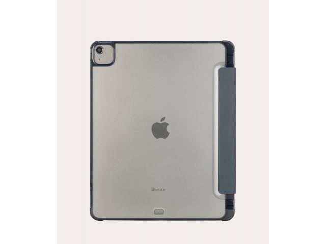 Ultra-zaštitna maska za novi iPad Air 12,9" 1. generacije (2024), djelomično izrađena od reciklirane plastike. Prednji poklopac ima satenski efekt i može se pretvoriti u praktično postolje. Stražnji dio otporan na udarce izrađen je od prozirnog dvostruko injektiranog polikarbonata s TPU rubovima za lakše umetanje iPada. Satenski poklopac sadrži unutarnji pretinac za pohranu Apple Pencil olovke. Odobrena prema vojnim standardima.