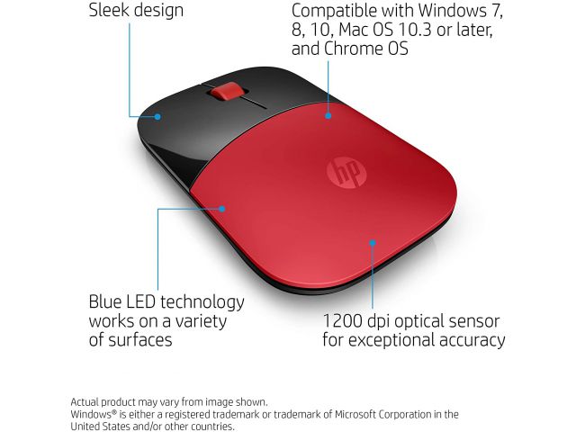 HP Wireless Mouse Z3700, miš malog profila i snažnog praćenja, pojačan preciznom plavom optikom brine se da radi na svim površinama.