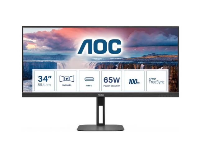 AOC U34V5C opremljen je 34-inčnim VA panelom s WQHD 21:9 rezolucijom za impresivno iskustvo gledanja u trostranom kućištu bez okvira koje možete naginjati i podešavati po potrebi. Povećajte svoju produktivnost uz USB-C s isporukom snage do 65 W, 4 USB priključka i HDMI, također nudi Picture by Picture MultiView za najsloženiji multitasking. Opremite se dvostruko većom brzinom sličica u sekundi od ostalih monitora i recite zbogom zastajkivanju slike i mutnim pokretima. S stopom osvježavanja od 100 Hz svaki se kadar prikazuje oštro i u glatkom nizu, tako da možete precizno poredati svoje snimke i cijeniti brze utrke u punom sjaju.