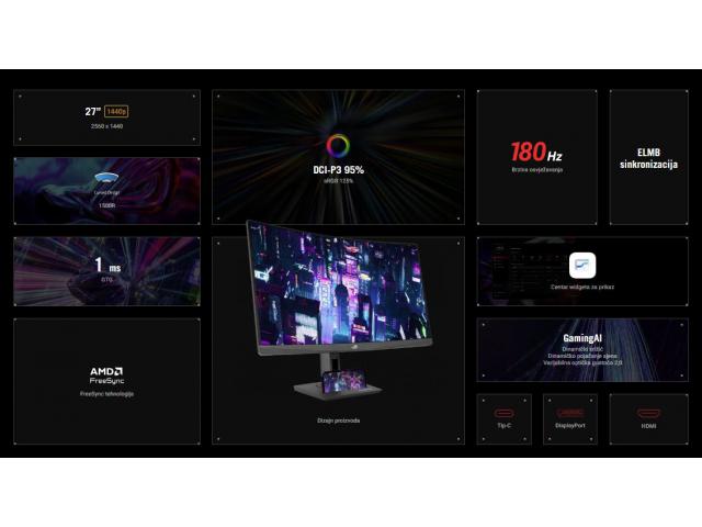 - 27-inčni zakrivljeni HDR monitor za igranje s rezolucijom od 2560 x 1440 i ultrabrzom brzinom osvježavanja od 180 Hz dizajniran za profesionalne igrače i impresivno igranje