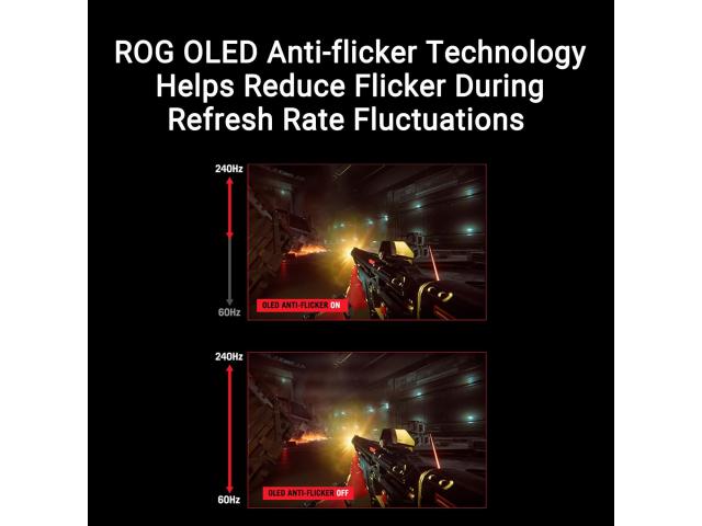 - ROG-ekskluzivna OLED Anti-flicker tehnologija pomaže u smanjenju treperenja tijekom fluktuacija brzine osvježavanja.