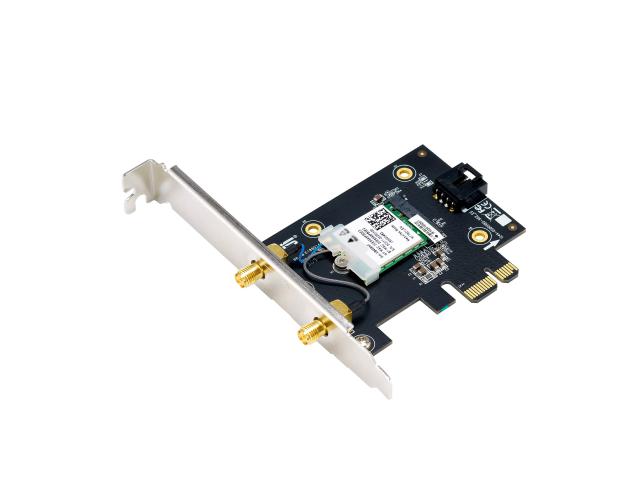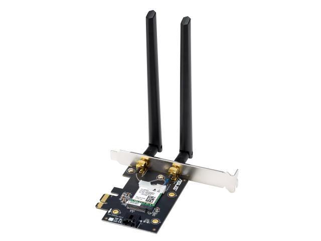WiFi 7 PCI-E Adapter with 2 external antennas. Supporting 6GHz band, 4096-QAM, Bluetooth 5.4, WPA3 network security
