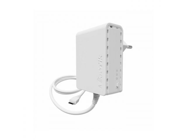 MikroTik PWR-LINE EU (PL7400), is designed for MikroTik products with microUSB port, like hAP mini or hAP lite. Connect PL7400 to your electrical outlet and then connect the USB cable to power your supported MikroTik device. When doing the same with another PWR-LINE compatible device somewhere further in your premises, the devices will form a 100Mbit (max) connection without needing to install any LAN cables. Comes with Type C power plug. Dimension 50 x 68 x 33 mm