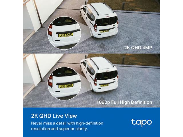 - 2K QHD Live View : Nema mrtvih točaka, samo oštri detalji. Pogledajte svaki centimetar svog doma sa širokim vidnim poljem od 150°, poboljšanim visokom 2K QHD rezolucijom.
