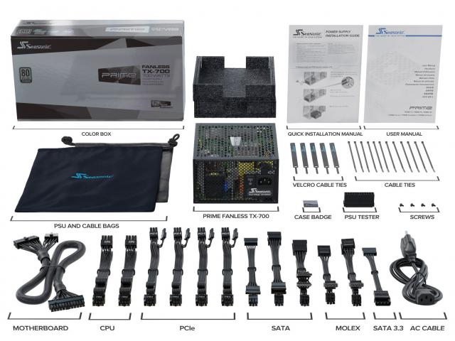 PRIME Fanless TX koristi bezventilatorsku tehnologiju koja u potpunosti eliminira buku ventilatora i osigurava stvarni tihi rad. Visoko kvalitetne ugrađene komponente i inovativni dizajn električnih spojeva rezultiraju čistim i stabilnim izlaznim naponom. Ovo je najjače napajanje bez ventilatora na tržištu i certificirano je 80 Plus Titanium. Jamstvo je 12 godina!