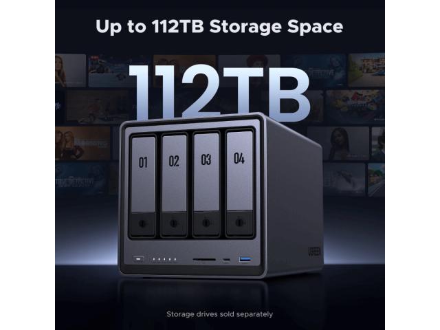 Četiri SATA ležišta podržavaju do 24 TB svaki, a također možete instalirati dva dodatna kompaktna M.2 NVMe SSD pogona do 8 TB svaki (za SSD predmemoriju ili dodatnu brzu pohranu). Sa svim korištenim utorima, maksimalni kapacitet je doista masivnih 112 TB.