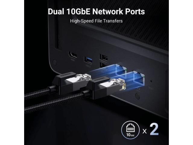 Dva 10GbE mrežna priključka velike brzine koji se mogu agregirati u 20G propusnost za brzine preuzimanja do 2500MB/s.