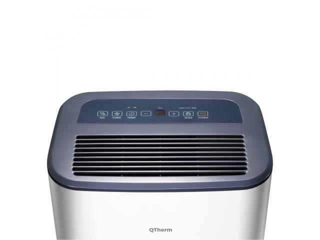 Ovaj kompaktni odvlaživač zraka zadovoljit će potrebe odvlaživanja u prostorijama do 44 m2. QTherm odvlaživač zraka TDR 16 WIVA opremljen je ionizatorom zraka koji čini zrak u prostoriji čistim i zdravim za udisanje. Za dodatni doprinos kvaliteti zraka u prostoriji pobrinut će se dvije vrste filtera: plastični perivi filter (filter protiv prašine) koji uz to što sprječava ulazak prašine u mehanizam, ujedno i smanjuje njezinu razinu u zraku i BIO HEPA filter koji pomaže u dodatnom filtriranju zraka protiv sitne prašine, peludi, prljavštine, bakterija, gljivica i ostalih sitnih čestica. Upravljanje uređajem je iznimno lako pomoću upravljačke ploče i jednostavnog prikaza razine vlage u prostoriji, a dodatnu mogućnost upravljanja i praćenje razine vlage moguće je putem Wi-Fi sučelja i pametnog telefona. U slučaju da zaboravite na uključen odvlaživač, ne morate se brinuti, jer će se sam ugasiti kada se spremnik vode kapaciteta 3L napuni do vrha, a za kontinuirani rad možete ga priključiti na cijev za odvod kondenzata.
