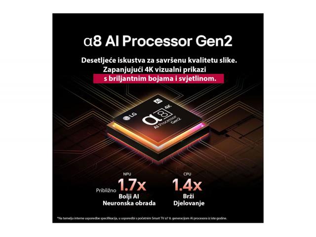- AI Super Upscaling 4K uvećana vizualna kvaliteta i surround zvuk uz alpha 8 AI Processor Gen2