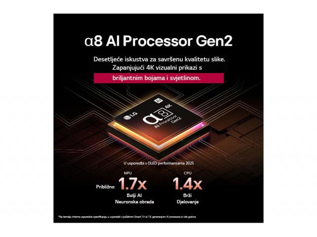- AI Super Upscaling 4K uvećana vizualna kvaliteta i surround zvuk uz alpha 8 AI Processor Gen2