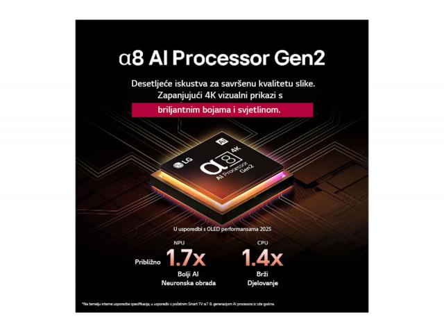 - AI Super Upscaling 4K uvećana vizualna kvaliteta i surround zvuk uz alpha 8 AI Processor Gen2