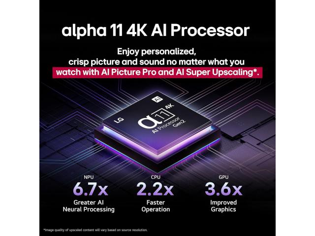 - Dolby Atmos 4.2 Channel 60W/ a11 AI Sound Pro (Virtual 11.1.2 Up-mix)