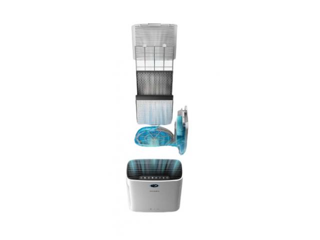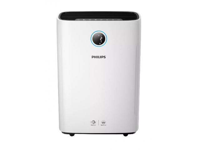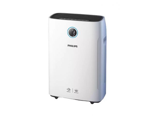 Pročišćivač tvrtke Philips 2 u 1 čisti prostorije površine do 85 m2 i brzo ovlažuje zrak brzinom od 600 ml/h. Uz kontrolu preko aplikacije i senzore, skenira zrak i automatski podešava vlažnost te čisti zrak od alergena i zagađivača.
