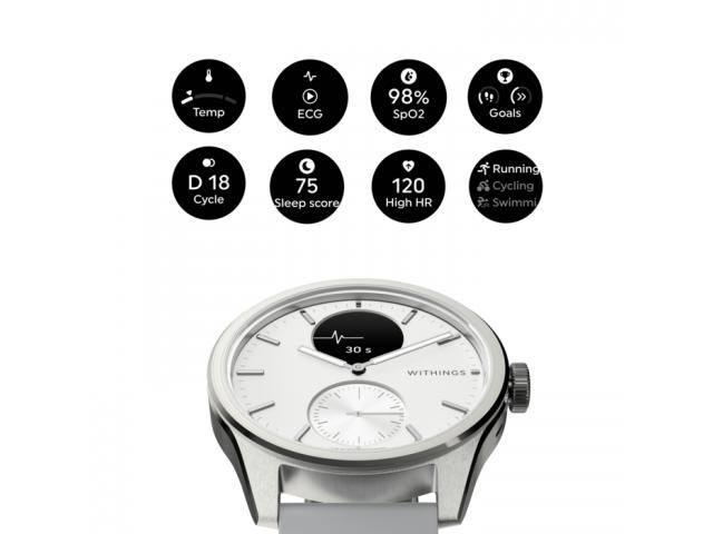 Grayscale OLED zaslon visoke rezolucije osigurava bolju čitljivost, a HealthSense™ OS 3 softver pruža preciznije metrike uz nove senzore. Kućište od nehrđajućeg čelika i safirno staklo daju premium izgled i izdržljivost. Sat je vodootporan do 5ATM, što ga čini pogodnim za plivanje. Sinkronizira se s besplatnom Withings aplikacijom za detaljne uvide i sigurno pohranjivanje podataka, a kompatibilan je s Apple Health, Google Health Connect i Google Fit.