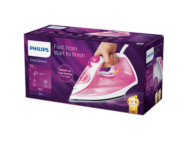 Istaknuti elementi specifikacije Neprestana para: 25 g/min Uklanjanje i čišćenje: Ugrađeni klizni gumb za čišćenje kamenca Brzo uklanjanje nabora Neprestana para: 25 g/min Napajanje: 2000 W Dodatna količina pare: 100 g Jednostavna uporaba Naziv stopala za glačanje: Ne lijepi se Kapacitet spremnika za vodu: 270 ml Duljina kabela za napajanje: 1,9 m Upravljanje kamencem Uklanjanje i čišćenje: Ugrađeni klizni gumb za čišćenje kamenca Ekološka učinkovitost Upute: 100% reciklirani papir Dizajn Boja: Ružičasta