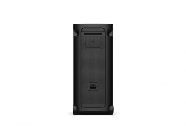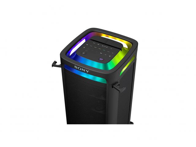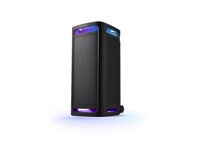 Bluetooth 5.3 podržava visokokvalitetni LDAC kodek za vrhunski prijenos zvuka, dok Stereo Pair i Party Connect omogućuju stereo zvuk ili sinkronizaciju do 100 kompatibilnih Sony zvučnika. 360° Party Light sinkroniziran s glazbom stvara festivalsku atmosferu. Zvučnik je opremljen kotačima i ručkom za lakše premještanje, iako masa od 28,5 kg i ovisnost o AC napajanju ograničavaju prenosivost. Gornja površina otporna je na prskanje, ali zvučnik nije potpuno vodootporan.