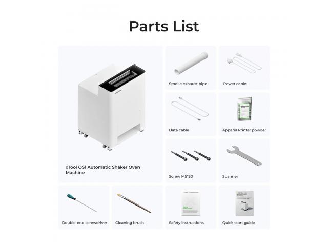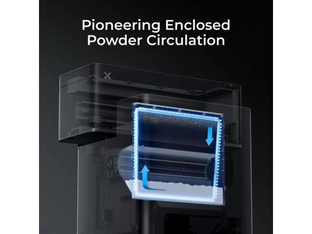 Osigurava potpuno automatizirani tijek rada : Automatski ispis, rezanje folije, nanošenje i protresanje praha, pečenje. Zatvoreni dizajn osigurava sigurnost. Stroj za miješanje zraka nema unutarnji sustav filtriranja. Kako biste osigurali optimalnu kvalitetu zraka i ventilaciju, preporučujemo korištenje xTool AP2 ili ventilatora. Molimo vas da tijekom rada dobro prozračujete svoj radni prostor.