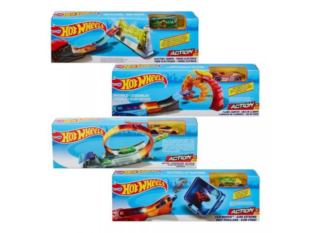Četiri različita seta s jedinstvenim značajkama nude pravu akciju i uzbudljive bitke s prijateljima! U svakom setu dobiva se jedan Hot Wheels legendarni autić.