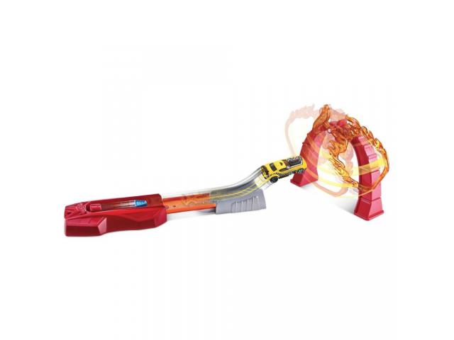 Postani pravi akrobat uz Hot Wheels Set s kultnim automobilima, ultra-cool narančastom stazom i lanserom. Uz četiri različite akrobatske staze, automobili mogu preskočiti električni toranj s munjama, projuriti kroz vatru, vrtjeti se u krug ili napraviti pravi salto.