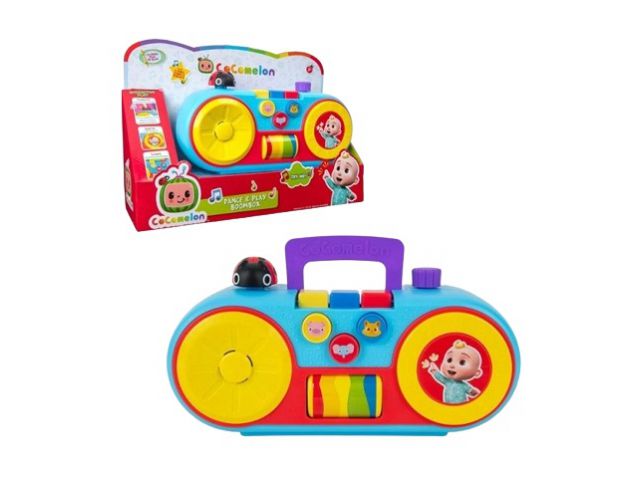 Cocomelon je jedan od najdražih YouTube serijala svim mališanima već nekoliko godina. Svakodnevne avanture ocrtavaju situacije u kojima se mala djeca redovito nalaze poput obiteljskih druženja, odlaska liječniku ili u vrtić. Vrijeme je za tulum sa zabavnim Dance and play Boombox glazbenom igračkom! Kreći se u ritmovima čak 8 različitih omiljenih Cocomelon pjesmica poput Freeze Dance Song, Looby Loo i druge. Pomoću ove igračke nauči kako se glasaju životinje pritiskom na dugme. Praktična ručka na igrački omogućuje ti d aponeseš zabavu gdje god krenuo! Istražuj glazbu, nauči razlikovati boje, životinjsko glasanje i brojeve te poboljšaj koordinaciju ruka oko i sve to dok se izvrsno zabavljaš! Baterije: 3 x 1,5V AA, uključene uz proizvod. Dob: 3+.