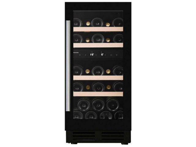 Dvostruka temperaturna zona, model ispod pulta s 32 boce, koji se može pohvaliti elegantnom vanjštinom i ručkom na vratima od nehrđajućeg čelika. DUNAVOX Flow-32D savršen je za suvremena kuhinjska okruženja. Boce su postavljene na čvrste drvene police i okružene bijelom, jantarnom i plavom unutarnjom LED rasvjetom. Imajte na umu da je ovaj model namijenjen kao ugrađena jedinica ispod pulta.