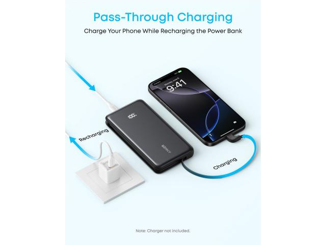 - Prolazno punjenje: Dok se vaša power bank puni, uređaj ostaje napunjen kako biste uvijek bili povezani i spremni za akciju.