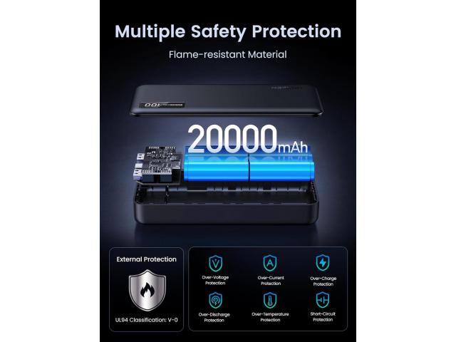 Zaštićen inteligentnim upravljanjem naponom i strujom, ugrađenom zaštitom od pregrijavanja i naprednim V-0 kućištem, UGREEN Power Bank pruža brzo punjenje i sveobuhvatnu zaštitu.