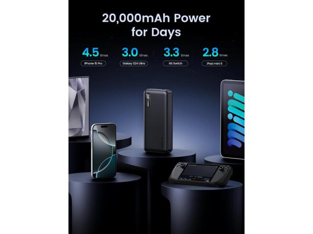 UGREEN USB C Power Bank od 20 000 mAh je i dalje kompaktan, idealan za putovanja i poslovna putovanja.