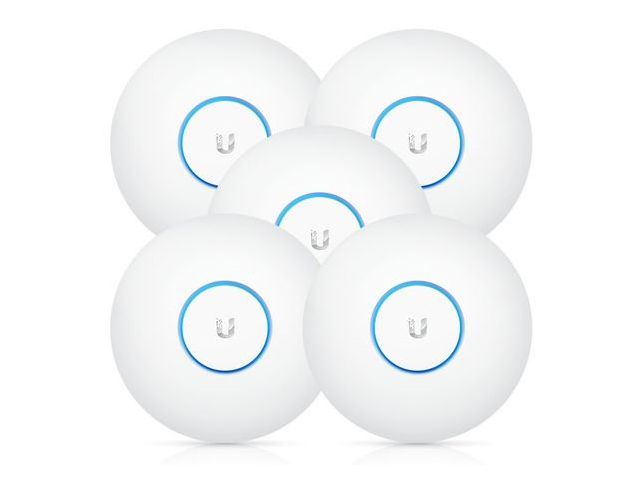 Ubiquiti Networks UAP-AC-PRO-5, UniFi AP AC Pro 5-Pack. No PoE Adapters Included. 802.11ac 3x3 Mimo Dual Radio Access Point for Indoor/Outdoor Use. 2.4 GHz Speed 450 Mbps. 5 GHz Speed 1300 Mbps. Range up to 183 m. Power: 48V PoE 802.3af PoE/802.3at PoE+. PoE Gigabit Adapters NOT included. 2x RJ45 Gigabit Ethernet Ports. (1) USB 2.0 Port. (3) Dual-Band Antennas, 3 dBi Each. Max TX Power 22dBm. Includes Ceiling Mount/Wall Mount Kit. Dimension 196.7 x 196.7 x 35 mm