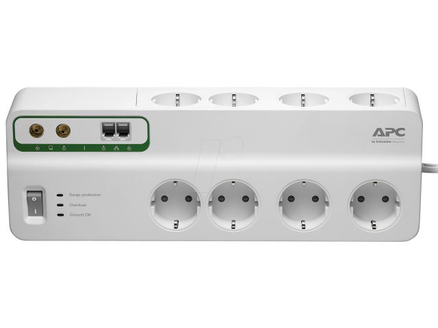 Osnovna prenaponska zaštita za računala i elektroničku opremu. 8 šuko utičnica. Duljina kabela 1,83m. Maksimalna ulazna jakost struje 10A. Dodatna zaštita: RJ-11 modemska/faks zaštita, koaksijalni kabel za CATV/SATV/modem/Audio-Video (koaksijalna priključnica).
