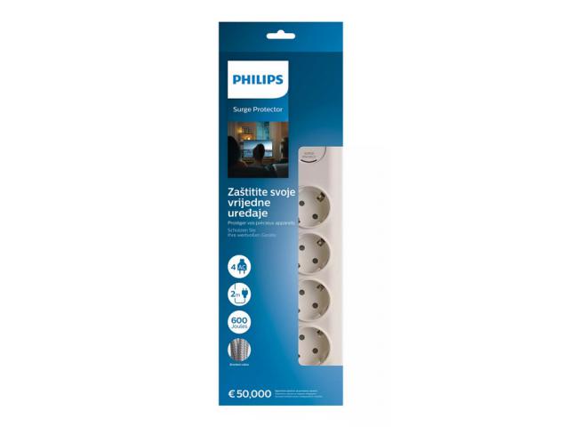 Ima 4 uzemljene Schuko utičnice s isprepletenim kabelom od 2 m. Dizajnirano za zaštitu opreme od strujnih udara. Automatski isključuje napajanje sustava radi zaštite od naknadnih strujnih udara uzrokovanih preopterećenjem.