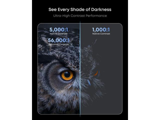 - Vidite svaku nijansu tame uz ultra visoki kontrast od 5000:1, poboljšan NebulaMaster™ tehnologijom za impresivnih 56 000:1. 200 W kino-kvalitetni 4.1.2 surround zvuk: U paketu s dva bežična Wi-Fi zvučnika pruža surround zvuk bez gubitaka s ultra niskom latencijom od 25 ms. Radi s bežičnim mikrofonom za nezaboravne zabave i karaoke večeri.